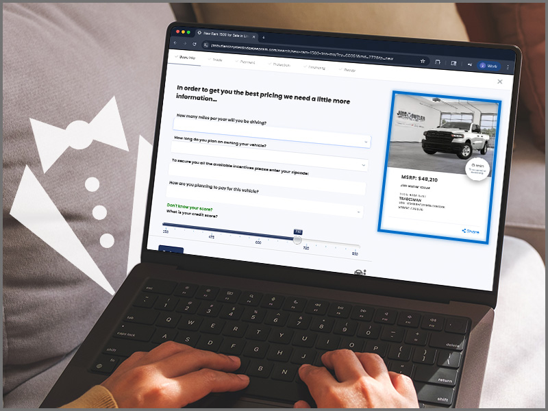 - Seamless Transition: When you visit the dealership, your online progress will be readily available to the sales and finance teams, making the in person transaction smoother and faster. They can pick up the deal "mid-stream" and make real-time adjustments if needed.